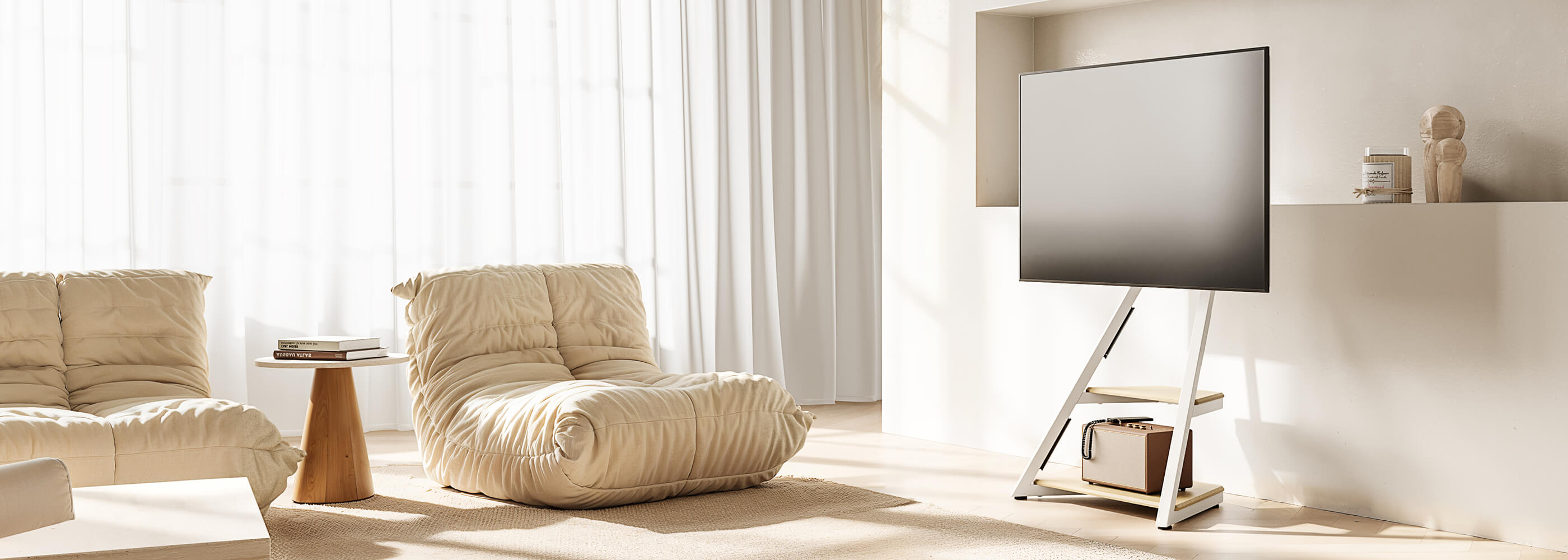 The FITUEYES Eiffel Series TV stand is crafted for effortless, uninterrupted immersion. With an adjustable height ranging from 1163mm to 1299mm, plus the ability to swivel 15° left or right, tilt 5° upwards, and 15° downwards, it offers maximum flexibility for a customised, ergonomic viewing experience.